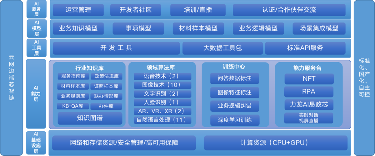 力龙智谱平台专注政务资料智能识别与深度学习技术,通过“云网边端芯智链”灵活提供AI服务